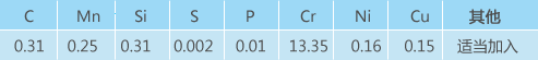 化學成分: 出廠狀態及參考硬度:退火HB230